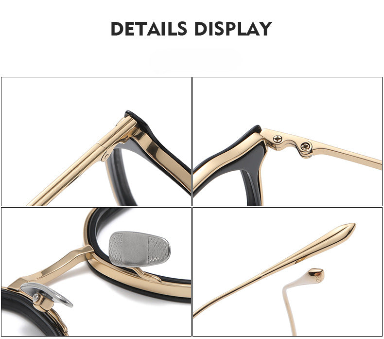 These stylish eyeglasses are made of polished and slender metal material. Featured with fashionable design. It is a good choice for man or women who are looking for a pair of fashionable eyeglasses.